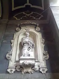 The second chapel to the right is dedicated to St Ruffo, and the chapel has plaques commemorating the valiant actions of Admiral Fabrizio Ruffo, Duke of Bagnara, (born 1619) against the Turks in Malta.[2]