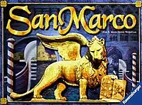 San Marco is a 2001 designer board game by Alan R. Moon and Aaron Weissblum. The game is set in Venice, and the title comes from the name of one of the city's districts. There are six districts across which players vie for influence. The games uses area control and card drafting as game mechanics. The game is divided into passages, which are then broken down into turns. Players can place and move both aristocrats and bridges, and score points for areas in which they have influence.[1]