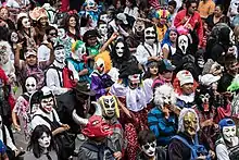 Holy Week begins with an exhibition of altars dedicated to the Virgin of Sorrows and end with the Procession of Silence.[36] Prior to the Procession of Silence, there is a reenactment of the judgment of Jesus by Pontius Pilate, on one side of the San Miguel Parish. Then the procession begins, which represents the fourteen scenes of the Passion before his crucifixion. Many of the townspeople participate in the event, with children dressed as angels and adults in period clothing carrying statues of Jesus. The procession winds its way along the main streets of the historic center completely in silence.[44] Another large religious celebration is the feast of Nuestro Señor de la Columna[45]