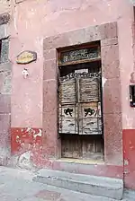 In the historic center, there are an estimated two thousand doors, behind which there are at least two thousand courtyards of various sizes.[8] Many of these have been restored to their former colonial state,[12] with façades of ochre, orange and yellow, windows and doors framed by handcrafted ironwork and made of hewn wood.[31] The interior roofs are flat, of heavy mortar supported by large beams. Very few structures have atriums or front yards; instead, open private space is behind the main façade in courtyards. These courtyards are where the private gardens were, protected from dust, excess water and crime.[8]