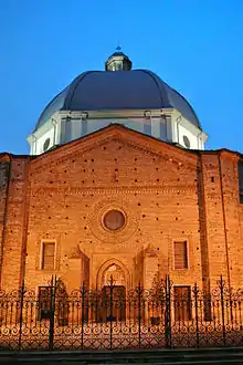 Brick facade with 14th-century portal and 19th-century dome.