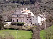 San Pietro extra moenia is an ancient Roman Catholic church in Spoleto, Umbria, Italy. Remarkable examples of Romanesque sculpture adorn the facade. The term extra moenia refers to its location outside the city walls.
