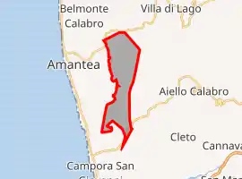 The town is bordered by Aiello Calabro, Amantea, Belmonte Calabro, Lago and Serra d'Aiello.
