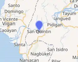San Quintin, officially the Municipality of San Quintin (Ilocano: Ili ti San Quintin; Tagalog: Bayan ng San Quintin), is a 5th class municipality in the province of Abra, Philippines. According to the 2020 census, it has a population of 5,705 people. [3]
