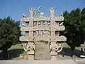 The Satavahana Empire under Satakarni II conquered eastern Malwa from the Shungas.[38] This gave the Satavahanas access to the Buddhist site of Sanchi, in which they are credited with the building of the decorated gateways around the original Mauryan Empire and Sunga stupas.[39] From the 1st century BCE, the highly decorated gateways were built. The balustrade and the gateways were also colored.[6] Later gateways/toranas are generally dated to the 1st century CE.[25]