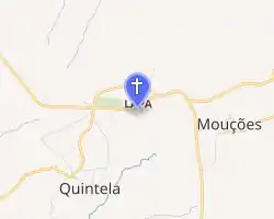 In the 9th century, the nuns who abandoned the Convent of Sismeiro, destroyed in 982 by Almansor, transported with them a small image of Nossa Senhora da Lapa ('Our Lady of the Rock', roughly translated), which they hid in Quintela.[1] It was only in 1498, that the first cult to Senhora da Lapa was started, after the image was discovered in the rocks of the village, by a mute child named Joana.[2] The construction of an altar, was done through the initiative of the abbey of São Paio, in the parish of Vila da Rua, who became the first guardian, collecting alms from the parishioners for the construction of a temple. The faithful began to visit, in pilgrimage, the place with the image was found during the first years of the 16th century.[3]