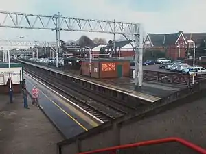 Sandbach railway station serves the town of Sandbach in Cheshire, England. The station is 4+3⁄4 miles (8 km) north east of Crewe on the Crewe to Manchester Line.