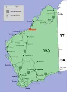 Sandfire is a location and roadhouse on the Great Northern Highway in Western Australia between Port Hedland and Broome. It is on the western edge of the Great Sandy Desert, and east of Wallal Downs and Mandora Station. It is inland, and located 20 km from the coast in the region of the Mandora Marsh and the Eighty Mile Beach, 45 km north of the Kidson Track turnoff. The area surrounding the roadhouse is of high cultural significance to the Nyangumarta people, who hold native title over the area.
