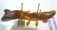 Sandgropers are wholly subterranean apterous insects of the family Cylindrachetidae that may grow up to 7 cm (3 in) long. Three genera are currently recognised: Cylindracheta, Cylindraustralia and Cylindroryctes. Like many subterranean animals, little is known about their habits and diet, but Western Australian farmers have blamed them for substantial crop losses.