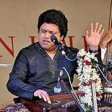 ![]() Sandip Bhattacharjee performing at ITC Sangeet Sammelan, Kolkata 2014 | |