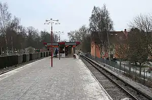 Sandsborg metro station is a station on the green line of the Stockholm metro, located in Gamla Enskede, Söderort. The station was inaugurated on 1 October 1950 as part of the inaugural stretch of Stockholm metro between Slussen and Hökarängen.[2] The distance to Slussen is 4.4 km (2.7 mi).