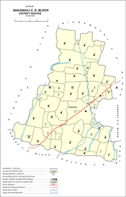 There are 45 villages in Sanjhauli block, including Sanjhauli itself; 41 are inhabited and 4 are uninhabited.[2]