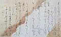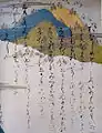 Sanju-rokunin Kashu (Collection of Thirty-six Anthologies)[1] is a set of illuminated manuscript codex from the early 12th century containing a collection of waka poems by thirty-six master poets (Thirty-Six Immortals of Poetry). The were originally selected for an 11th century anthology known as the Sanju-rokuninsen (三十六人撰) by Fujiwara no Kintō. In the 12th century, the poems were transcribed as a compilation for the birthday of Emperor Toba (r. 1107-1123) consisting of 39 volumes and involving 20 calligraphers.[2] It is the oldest surviving manuscript that contains the collection of the 36 poets and is designated as a National Treasure, and is believed to be the oldest known example of paper marbling. It also contains chigiri-e, a type of paper collage. In the 16th century, the works were dedicated toNishi Honganji which was located in Ishiyama in the Osaka Prefecture. The temple was later moved to Kyoto and divided, and at this point the works became part of the formal Nishi Hongan-ji National Treasures, where they are still stored.[2]