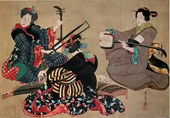 Sankyoku (Japanese: 三曲 / さんきょく) is a form of Japanese chamber music played often with a vocal accompaniment. It is traditionally played on shamisen, koto, and kokyū, but more recently the kokyū has been replaced by shakuhachi.[1]