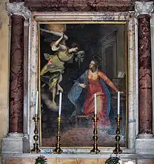 - The Chapel of the Annunciation : its decoration was finished in 1874. Above the 17th-century altar stand two columns of coralline breccia that support a broken pediment with a bass-relief in stucco representing the Virgin and Child. The altarpiece by Ottavio Leoni (or Lioni) (1578–1630) represents the Annunciation.