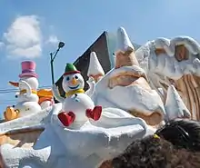 As part of its citywide Christmas celebrations, known as Gran Festival Navideño, Mexico City holds a parade on Eje Central. The 2011 version featured mobile machines that blew artificial snow on participants and spectators.[3] This parade has been telecast on the Televisa and Azteca networks, with Televisa's coverage being the official coverage and being the most-widely aired coverage, being broadcast in other Spanish-speaking countries and on Galavision in the United States.