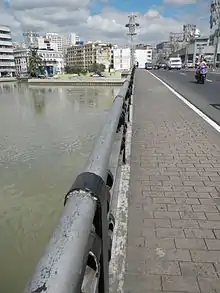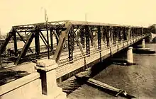 Santa Cruz Bridge was a bridge that spanned the Pasig River in the city of Manila in the Republic of the Philippines. The steel truss bridge was the fourth to span the river connecting the district of Santa Cruz from Plaza Goiti to Arroceros Street in the old city center of Manila. The construction of the bridge was started by the Spanish colonial government in Manila[2] but completed by the Americans after gaining sovereignty of the country from Spain after the Spanish–American War. The bridge was opened on March 1, 1902 but was destroyed in World War II during the liberation of Manila. A simpler reinforced concrete beam bridge was constructed after the war and the span was renamed as MacArthur Bridge after General Douglas MacArthur.