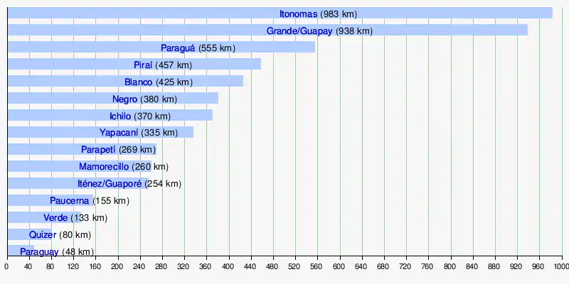 The main rivers in the norther basin are river Iténez, making the border with Brazil, Río Grande, river Piraí and river Itonomas. In the southern basin, the main rivers are river Paraguay and its tributaries, including river Negro.