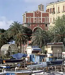Santa Maria del Parto a Mergellina (Holy Mary of Childbirth in Mergellina) is a church located in the quartiere of Chiaia in Naples, Italy. The church is peculiarly perched on top of a private building, and accessed by a stairway, placed behind a restaurant located in piazza Mergellina.
