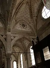 In 1543, the Titian altarpiece depicting Christ receiving the crown of thorns was installed in the Chapel of the Holy Crown, located on the right of the nave. The painting, looted by French troops in 1797, is now in the Louvre. This chapel is frescoed with Stories of the Passion by Gaudenzio Ferrari. In the small cloister adjacent to the tribune near the door that leads to the sacristy is a fresco by Bramantino.[5] The church also contained frescoes depicting the Resurrection and Passion by Bernardo Zenale.[6]