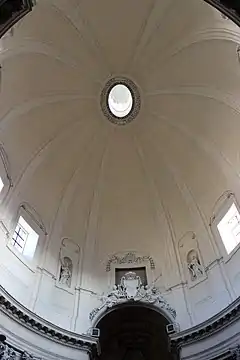 The interior has an elliptical plan, while its so-called "twin" Santa Maria dei Miracoli has a circular plan. It has six side chapels (in the "twin" church they are four). The cupola is dodecagonal.