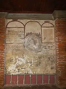 The ancient painting is made of argamasa – a type of cement used during the period which is made of lime mortal, fine river sand, and egg whites. The mural bears the date "1619", and is believed to have been made within five years of that date.[16]