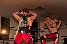 On August 31, 2019, at All Out, Santana and Ortiz debuted as heels for All Elite Wrestling (AEW), attacking both Lucha Brothers (Pentagón Jr. and Fénix) and Nick Jackson after their tag team ladder match.[8] On October 2, the inaugural episode of Dynamite, they teamed with Chris Jericho in the main event and defeated The Elite (Kenny Omega and The Young Bucks).[9] Led by Jericho, they subsequently formed a new faction along with Sammy Guevara and Jake Hager called The Inner Circle.[10] On the November 18, 2020 episode of Dynamite, Konnan reunited with Santana and Ortiz during an Inner Circle party in Las Vegas.[11] On the February 9, 2022 episode of AEW Dynamite, the Inner Circle had a team meeting that ended with Sammy Guevara throwing his vest and walking out. It was later announced that Jericho and Hager would face Santana and Ortiz in a tag team match the following week, with it being billed as the Inner Circle Implodes match.[12] On the March 9, 2022 episode of Dynamite, the Inner Circle was disbanded after Jericho and Hager attacked Santana and Ortiz and formed an alliance with 2point0 and Daniel Garcia.