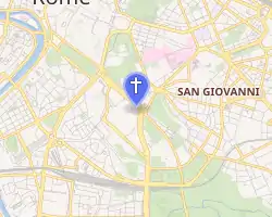 A 337 epitaph inscription[2] in the Basilica di San Paolo fuori le Mura celebrates the late Cinnamius Opas, lector of a church known as Titulus Fasciolae;[3] the name has traditionally been explained as the place where St. Peter lost the foot bandage (fasciola) that wrapped the wounds caused by his chains, on his way to escape the Mamertine Prison.[4] In the acts of the synod of Pope Symmachus, in 499, the Titulus Fasciolae is recorded as served by five priests. This same building is recorded as titulus Sanctorum Nerei et Achillei in 595; therefore the dedications to Saints Nereus and Achilleus, two soldiers and martyrs of the 4th century, must date to the sixth century.