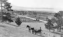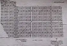 In 1889, Chinese workers began make the ground level at the end of the railway line. In April 1889, Duckworth placed an announcement in the local newspapers for the sale of Carmel lots, highlighting the advantages of the lots, access to the Southern Pacific railroad.[2] Chinese and Hispanic laborers cleared shrubs and marked off the lots. Cottages were built and business were started.[14]: p93 [3]: p15