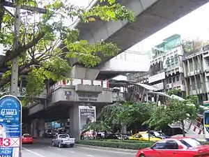 Saphan Khwai station (Thai: สถานีสะพานควาย, RTGS: Sathani Saphan Khwai, pronounced [sā.tʰǎː.nīː sā.pʰāːn kʰwāːj]) is a BTS skytrain station, on the Sukhumvit Line in Phaya Thai District, Bangkok, Thailand. The station is located on Phahonyothin Road near Saphan Khwai intersection, the dense trade area with many shops, fresh markets and apartments, at the front of Saphan Khwai market and Paolo Memorial Hospital. Big C Supercenter (Saphan Khwai branch) and Thai Philatelic Museum (stamp museum) at Sam Sen Nai post office are located to the south of the station.