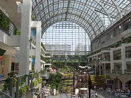The Nishi Khan is composed of the Hotel Clubby Sapporo, the Sapporo Factory Fitness Club, and the Sapporo Factory Hall. The hall is a place where many events have been held, it has been the venue for a number of musical events. The Renga-kan houses some restaurants, and the museum of the Kaitakushi Brewery. One of the symbols of the complex, a black colored, tall chimney with the word "Sapporo Beer" on it is standing on the square next to the museum. Open beer gardens are often held in front of the western side of the Renga-kan in summer. In the Atrium, many plants are placed alongside the pathway, and glass windows are fitted into the roof, making the Atrium filled with sunlight during the daytime. A large television is installed on the south side of the Atrium. During Christmas a tall decorated Christmas tree stands at the center.[6] The other sections in the complex are also decorated with lights during Christmas.