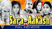 Sara Aakash (English: The Whole Sky) is a 1969 Hindi film directed by Basu Chatterjee, based on first part of novel Sara Akash (The Infinite Cosmos, 1951) by Rajendra Yadav. This was Yadav's debut novel, originally published as Pret Bolte Hain (Ghosts Speak), renamed in 1960, the title in turn was taken from a poem by Ramdhari Singh Dinkar.[2][3] The film starred Rakesh Pandey, Madhu Chakravarty, Nandita Thakur, A. K. Hangal and Dina Pathak in lead roles. Set in a traditional middle class joint family in Agra, the film deals with internal conflicts of a newly wed couple, both of whom find themselves unprepared for domestic life.[4]