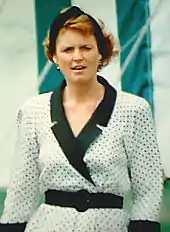 Ferguson attended Daneshill School, Stratfield Turgis. The staff of the school described her as a "courageous, bubbly and outgoing little girl".[5] She then attended Hurst Lodge School in Ascot.[13] She did not shine academically but showed talent in swimming and tennis.[5] At a young age, she developed an interest in skiing and later briefly worked as a chalet girl.[14] In her teenage years, she worked both as a cleaner and waitress.[15] After finishing a course at Queen's Secretarial College at the age of eighteen,[16] Ferguson went to work for an art gallery.[5] Later she worked in two public relations firms in London, and then for a publishing company.[5] During her youth, she dated Kim Smith-Bingham, a stockbroker, and Paddy McNally, a motor racing manager more than 20 years her senior.[5][17]