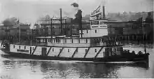 Damage to both vessels was minor, $50 worth to Lurline and $150 to Sarah Dixon.[45] Even so, following a hearing on December 10, both captains, who were prominent steamboat men, were found to be at fault for violating the navigation rules, and their licenses were suspended for seven days.[45] Even so, the Shaver Transportation Company, brought legal action against Jacob Kamm, owner of Lurline, seeking damages of $2,000 for damage to Sarah Dixon and lost time for the steamer.[46]
