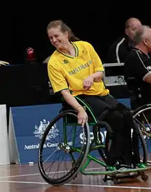 Stewart was first selected to play for the Australia women's national wheelchair basketball team, known as the Gliders, in 2003.[3] Since then she has played over 150 international games for Australia. Her international career highlights include gold medals at the Asia-Oceania 2008 and 2012 Paralympic Qualifiers, the Asia-Oceania 2006 World Cup Qualifiers, and the 2009, 2010 and 2012 Osaka Cup. She was named MVP of the tournament at the 2012 Osaka Cup, and was All-Star Five for the Four-Nation International in Sydney in 2007.[3][5][10][11] She competed at the 2006 and 2010 World Wheelchair Basketball Championship. The Gliders finished fourth both times.[2] She was selected to participate in a national team training camp in 2010.[13]