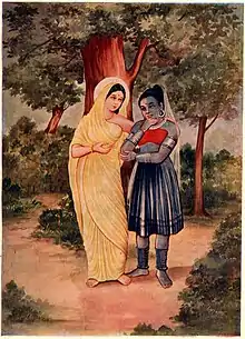 In the Hindu epic Ramayana, Sarama (Sanskrit: सरमा, Saramā) is the wife of Vibhishana, the brother of Ravana, the demon (rakshasa) king of Lanka.[1] Sometimes, she is described a rakshasi (demoness),[2] at other times, she is said to have gandharva (celestial dancers) lineage. All accounts agree that Sarama was friendly to Sita, the consort of Rama (the prince of Ayodhya and an avatar of the god Vishnu), who was kidnapped by Ravana and imprisoned in Lanka. Like her husband who sides with Rama in the war against Ravana, Sarama is kind to Sita and aids Rama. Sarama and Vibhishana had a daughter called Trijata.
