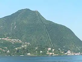 At its base sits the town of Laveno-Mombello, from which the mountain is served by a funicular cable ride to the top. The top of the mountain has a hotel and restaurant popular with tourists, along with a launch board for hang gliders to descend the mountain.