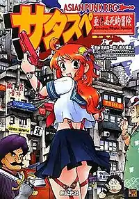 SATASUPE (サタスペ) is a Japanese crime action role-playing game. The title "SATASUPE" is derived from the English words "Saturday night special". It is also known as an Asian Punk RPG. The setting is similar to Japanese movie Swallowtail Butterfly. Player characters are called Akyou (亜侠, lit. Asian outlaw) and they adventure in fictitious setting Osaka is an indecent city occupied by foreign Great Powers.