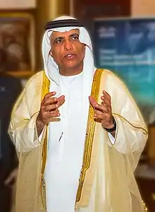 Saud has received several awards, including an honorary doctorate from the University of Bolton, UK, in 2010; an honorary fellowship of the Jawaharlal Nehru Centre for Advanced Scientific Research in India, in 2013; and an honorary doctorate degree in economics from Incheon National University, South Korea, in 2018.[32][33] The award from the University of Bolton was given in recognition of his role in supporting education in the emirate and for attracting leading academic institutions from around the world to Ras Al Khaimah.[34] In November 2018, he was named Visionary Leader of the Year at the Arabian Business Awards in Dubai.[35][36][37]