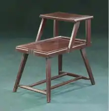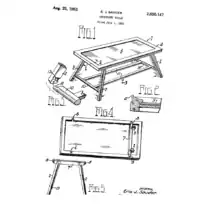 Erie J. Sauder's first snap-together furniture piece was an occasional table created in 1951. The style of furniture became the first patented ready-to-assemble furniture design and started the industry.[1][3] The knock-down table was filed for patent on July 1, 1952, and received final patent approval August 25, 1953.[4] This patent was the basis for Sauder Woodworking Company to become the largest maker of ready-to-assemble furniture in the country.[5]