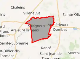 | Wikimedia Commons has media related to Savigneux, Ain. |