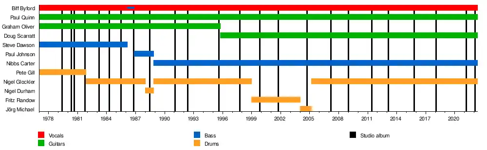 | Members | Biff Byford Paul Quinn Nigel Glockler Nibbs Carter Doug Scarratt |