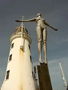 During the First World War, the town was bombarded by German warships of the High Seas Fleet, an act which shocked the British (see Raid on Scarborough, Hartlepool and Whitby).[25] Scarborough Pier Lighthouse, built in 1806, was damaged in the attack.[26] A U-boat assault on the town, on 25 September 1916 saw three people killed and a further five injured. Eleven of Scarborough's trawler fleet were sunk at sea in another U-boat attack, on 4 September 1917.