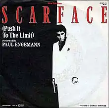 "Scarface (Push It to the Limit)" is a song written by record producers Giorgio Moroder and Pete Bellotte and recorded by American musician Paul Engemann. It appeared on the soundtrack for the 1983 motion picture Scarface. The song appears in the film in the montage sequence that demonstrates Tony Montana's rise in wealth and position after he kills Frank Lopez (Robert Loggia) and takes over as the head cocaine trafficker in Miami. In the film, the song appeared in a slightly longer version, featuring a guitar solo during the instrumental break. This version was eventually released on a 12-inch single LP with the guitar solo included.