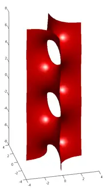 It has the Weierstrass–Enneper parameterization , and can be parametrized as:[3]