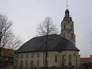 In 1412 Schleusingen received the Stadtrecht (the right to be considered a city instead of a town) but only in 1533 the Marktrecht (the right to, among other things, hold a folk festival or a weekly market). In 1502 Earl Wilhelm IV. founded a Barfüsserkloster (monastery) in the outskirts. During the riots in the German Peasants' War in the spring of 1525, the inhabitants, documents and valuables of the neighboring monasteries Veßra and Trostadt were sent to Schleusingen to be brought to safety at the Bertholdsburg. In 1544 the Reformation was introduced. The Aegidienkapelle of the St. Johannis Church became the burial place of the Earls of Henneberg in 1566 and of Elisabeth of Brandenburg. The Barfüsserkloster was transferred into state ownership and from 1560 it was used as a school. On 7 June 1577 this school was inaugurated on as a Gymnasium (high school) and still exists today under the name Hennebergisches Gymnasium ‘Georg Ernst’]. Until 1583 Schleusingen was the seat of the Earls of Henneberg. After the death of Earl Georg Ernst), with whose death the royal line was extinguished, Schleusingen was transferred to the Saxon dukes of the Ernestine and the Albertiner line, at first under joined administration. From 1500 to 1806 Schleusingen belonged to the Franconian Imperial Circle.