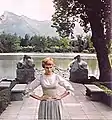Maria on the replica of Schloss Leopoldskron's walkway.