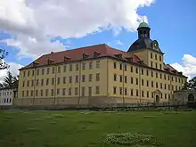 Schloss Moritzburg is a Schloss (palace) in Zeitz on the White Elster in the Burgenlandkreis in Saxony-Anhalt. The present baroque building dates from the 17th century and was previously a royal palace and fortified seat of a bishop. Zeitz Cathedral is also located on the site.