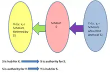 While being strongly cited makes a scholar a strong authority in his field, having strong references makes a scholar a strong hub, who knows all the significant work in that field. Calculation of the hub and authority indices requires the knowledge of the relationships between scholars being cited or referred to.