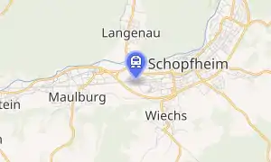 Schopfheim West station (German: Bahnhof Schopfheim West) is a railway station in the municipality of Schopfheim, in Baden-Württemberg, Germany. It is located on standard gauge Wiese Valley Railway of Deutsche Bahn.[1]